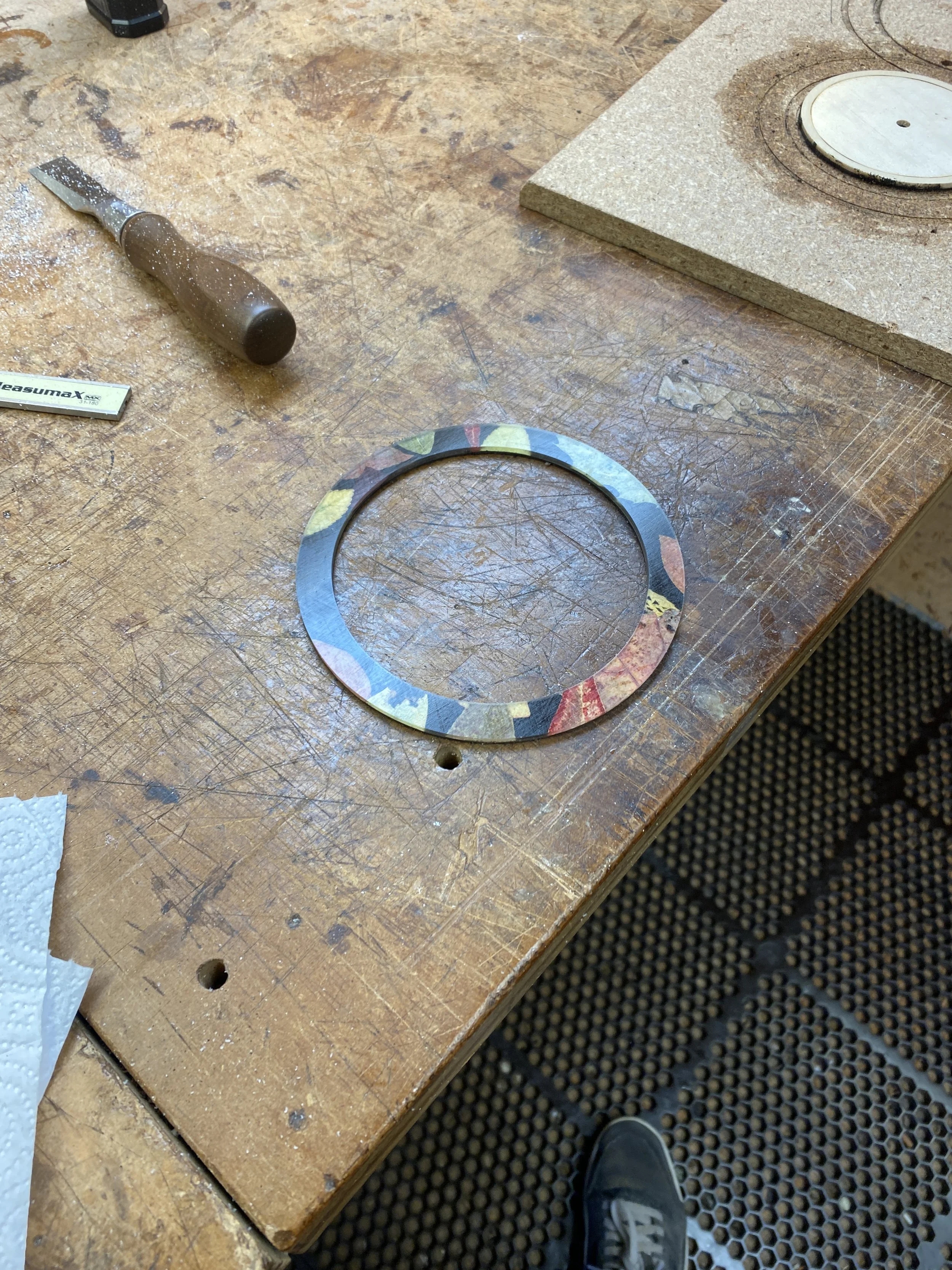 After the epoxy dried, I sanded it down to the thickness needed for the rosette.